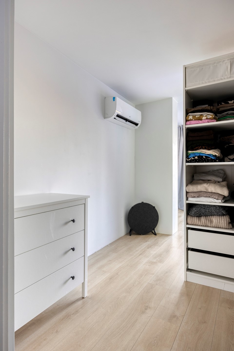 VERDIEPING Op de verdieping bevinden zich drie slaapkamers en de badkamer. De slaapkamers zijn praktisch ingedeeld: # Slaapkamer aan de voorzijde van circa 6,3 m² # Slaapkamer aan de voorzijde van circa 11 m² # Royale slaapkamer aan de achterzijde van circa 21 m², voorzien van airco, inloopkast en schuifpui naar het balkon. Vanaf deze slaapkamer en het balkon is er een weids uitzicht over de tuin en het polderlandschap. De badkamer is compleet uitgevoerd met een ruime douche met twee stortdouches en handdouches, een wastafelmeubel, wandtoilet, dakraam en elektrische vloerverwarming. Op de overloop is een aparte kast aanwezig voor de wasmachine en droger.