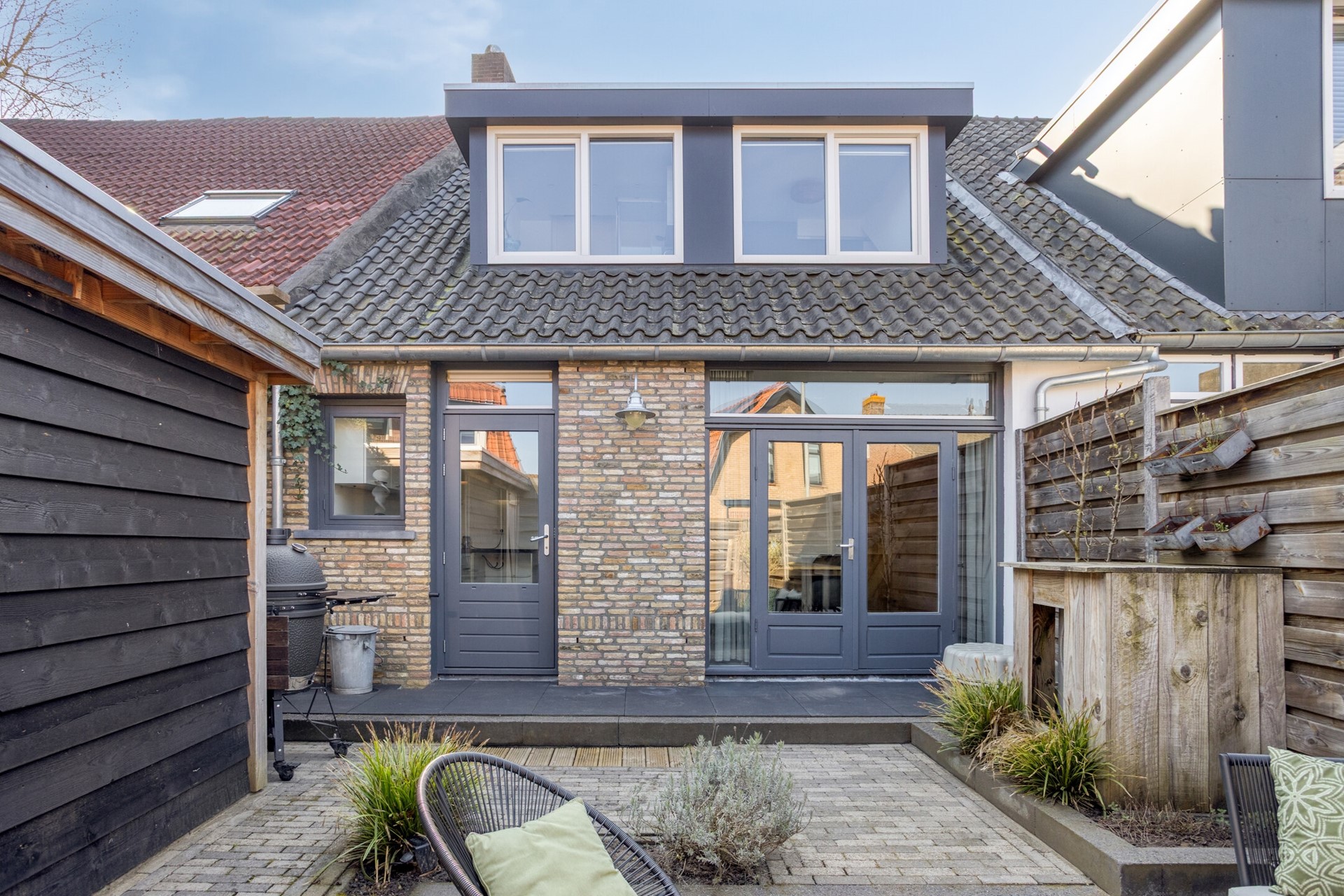 Gerenoveerde en in 2019 volledig gemoderniseerde geschakelde twee-onder-een-kapwoning met berging, gelegen op een fijne locatie op loopafstand van het centrum van Terheijden.