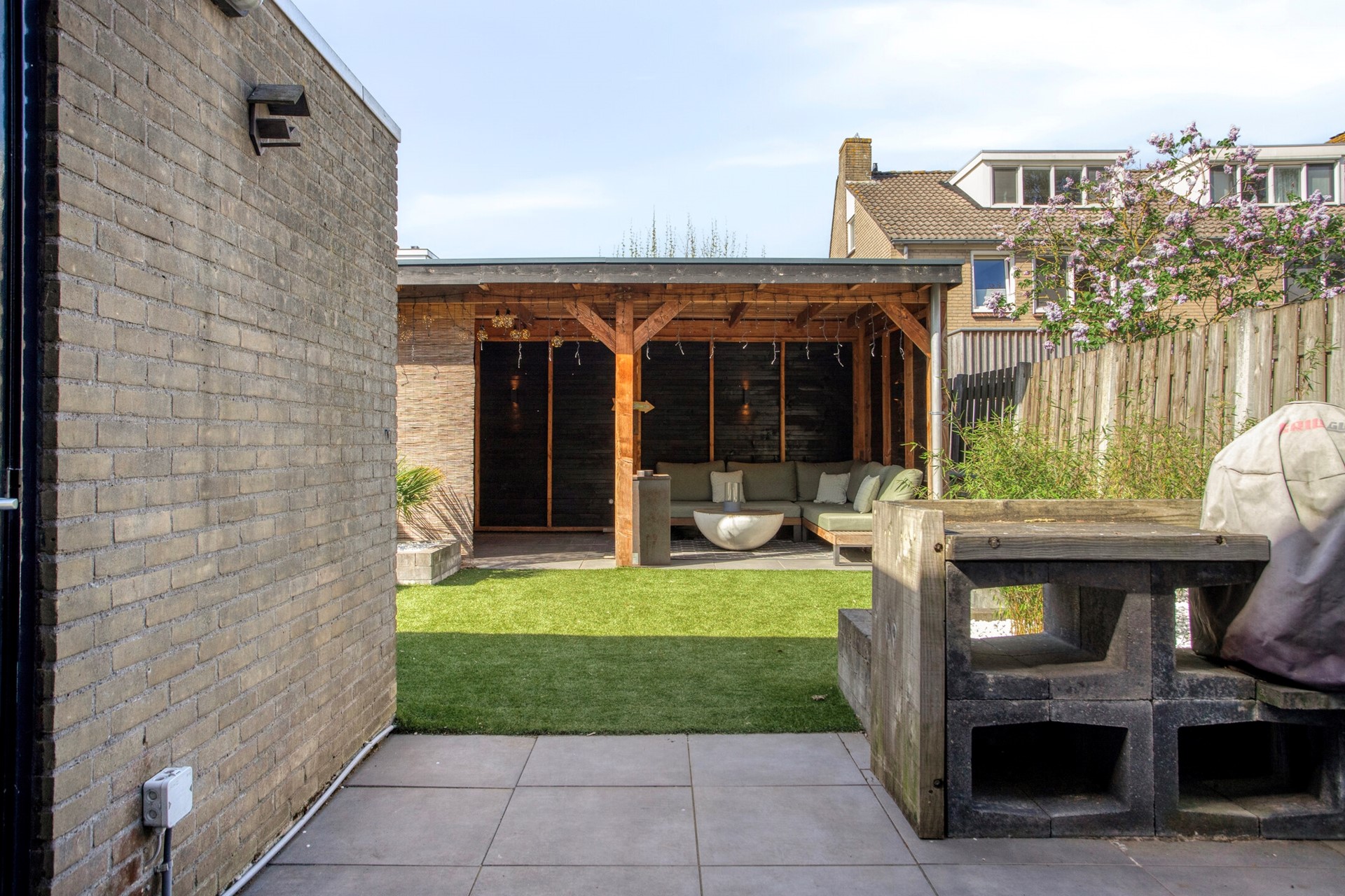 Er is zowel een grote voortuin als een zonnige ruime achtertuin. In beide tuinen geniet je van veel privacy. VOORTUIN In de diepe voortuin is plaats voor een tuinhuisje waar je o.m. fietsen en tuinmeubelen kunt plaatsen. ACHTERTUIN achter in deze tuin is een grote overkapping geplaatst waar je lekker kunt zitten en genieten met familie en vrienden. Een deur geeft toegang tot een gangpad naast de tuin voor een z.g. ‘achterom’. PARKEERPLAATS: Aan de straatzijde is vrij parkeren mogelijk.