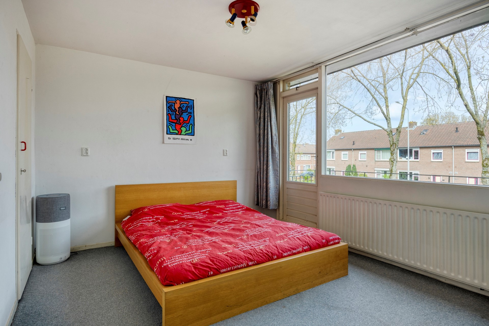 Via de slaapkamer aan de voorzijde van de woning kom je op het balkon.